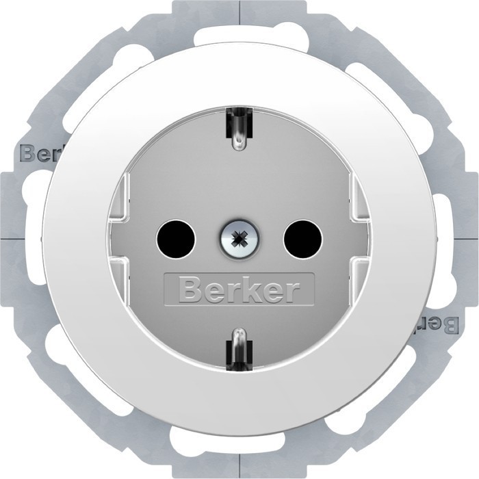 Розетка Berker R.CLASSIC, скрытый монтаж, с заземлением, со шторками, белый блестящий, 47552089